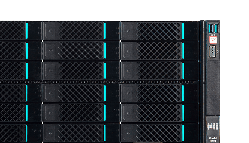KunTai R524 存储型服务器是人生就是搏数码基于鲲鹏处理器推出的新一代 ARM数据中心服务器。。。。主要面向存储业务,,,,具有海量存储、、高性能、、低功耗以及易扩展的特点,,,,适合为大数据分析、、、、软件定义存 储等应用场景的工作负载进行髙效加速。。
